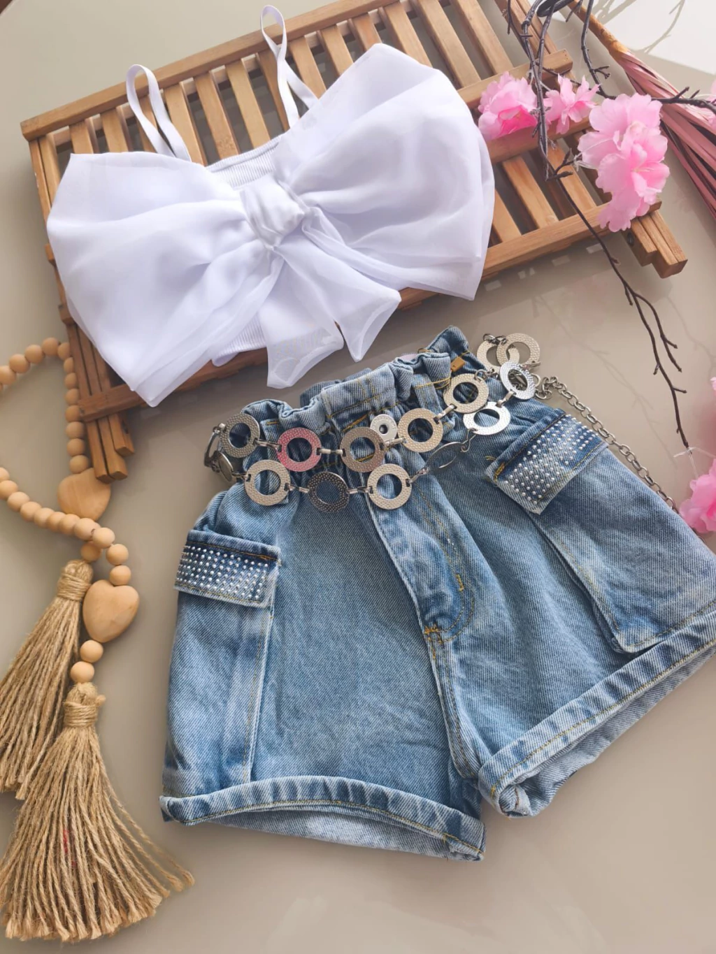 CONJUNTO DIVA: Composto por um short 100% jeans+ bag + regulagem interna na cintura.